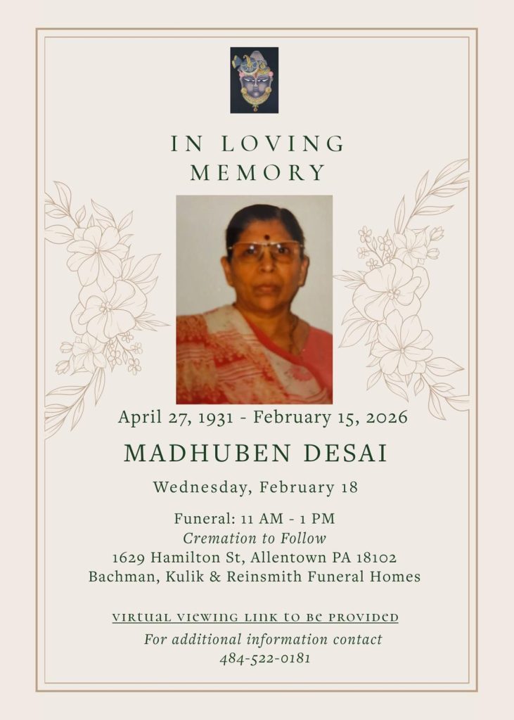 Livestream: https://www.bkrfh.com/obituary/madhuben-desai?fh_id=16120